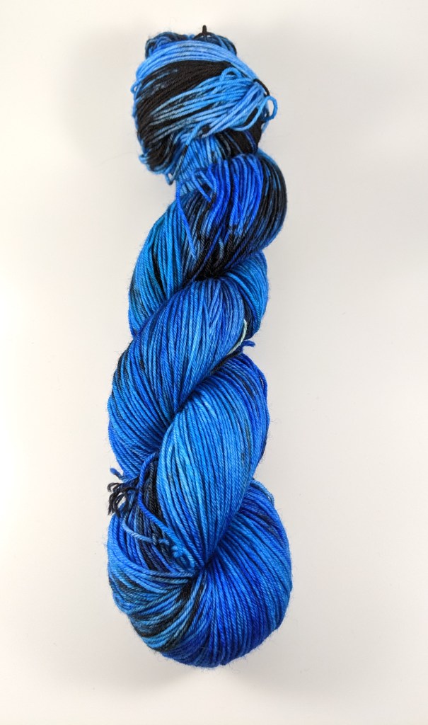 Blue Tundra: A bright blue and black colorway featuring blue, teal and black. It pairs well with Frozen. Blue Tundra is available as an individual skein (custom size skein and quantity) and in a set with Frozen.