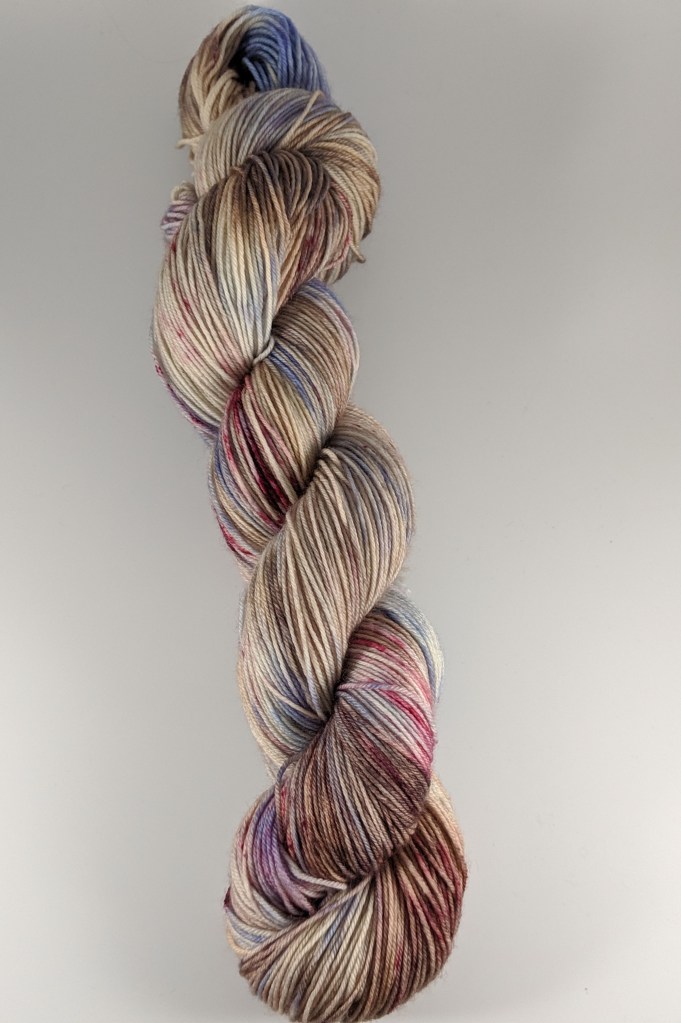 Berry Pie: A delicious berry pie themed skein. It is a variegated yarn with blue and brown all throughout the yarn. It has speckles of berry over the top, just dripping along the skein. This recipe is slightly different than earlier versions of Berry Pie and I hope you love the new rendition. Berry Pie is available as an individual skein (custom size skein and quantity) and in kits as pictured above.