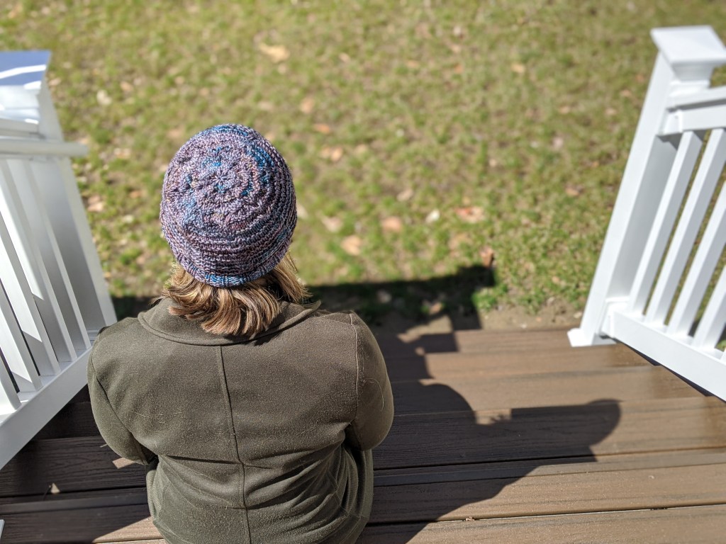 I have no knitting mistakes or crazy stories to mention about it. I cast it on, followed the pattern and it was done in a breeze. The color is darker than it appears in my outdoor photos. The colors speckled in there do pop though. I love the teal and the gold that move around the hat.