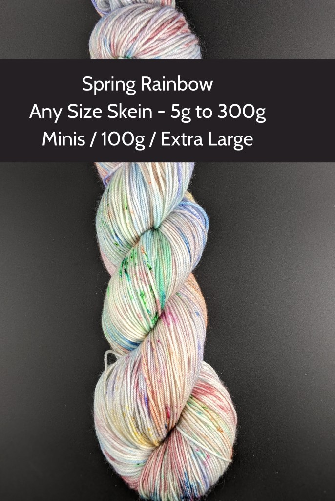 My newest gradient set is a spring rainbow! I love the light pastel tones in this rainbow and it’s sure to brighten up any project. Each skein is a different color of the rainbow with the same color speckled on it. You can order the set in any size skeins, but all 10 skeins will be the same sizes.