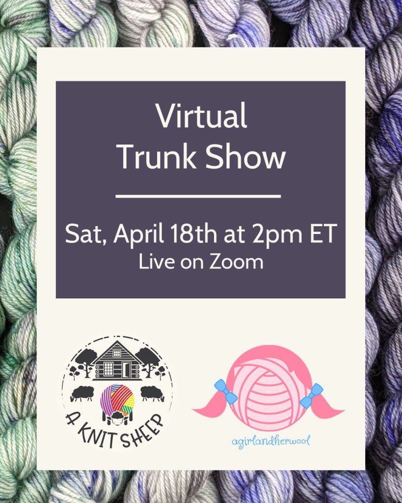 That being said, Lisa at A Knit Sheep and I have been working hard to bring you all a virtual trunk show! There’s no need to go without beautiful yarn during this tumultuous time. It works even better if you are not local to NJ and still want to participate. Consider this your formal invitation!