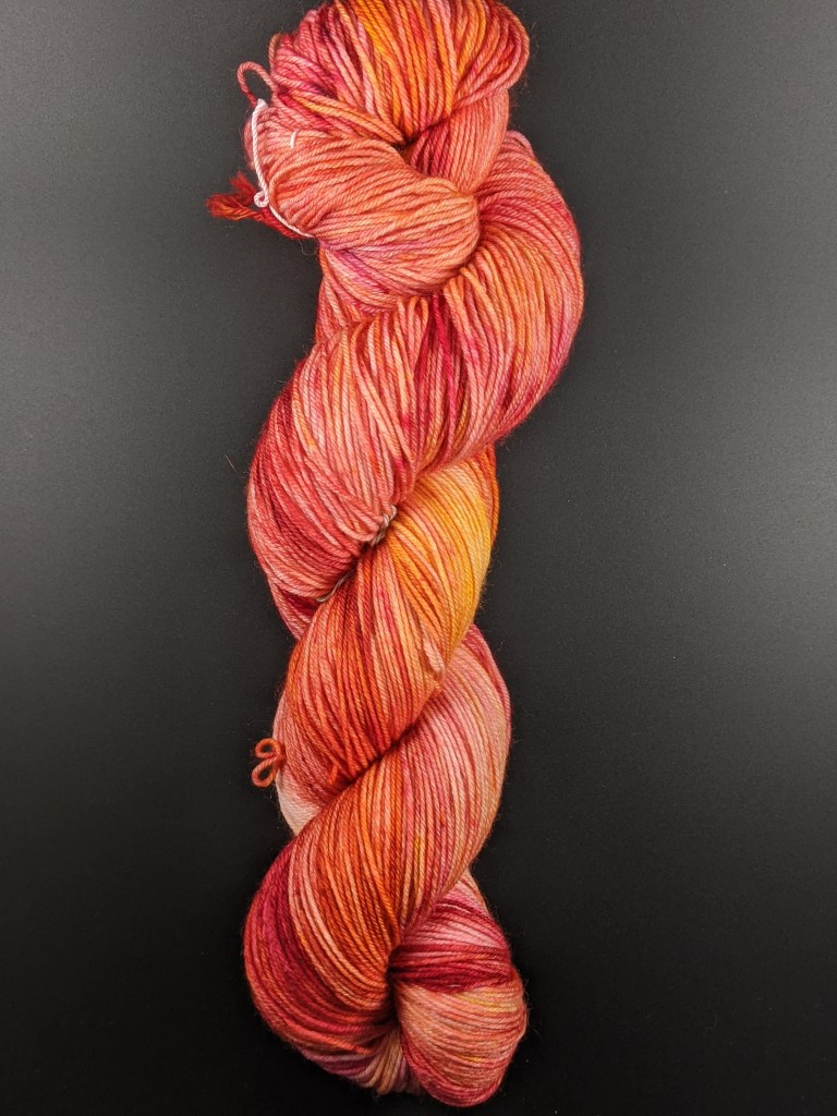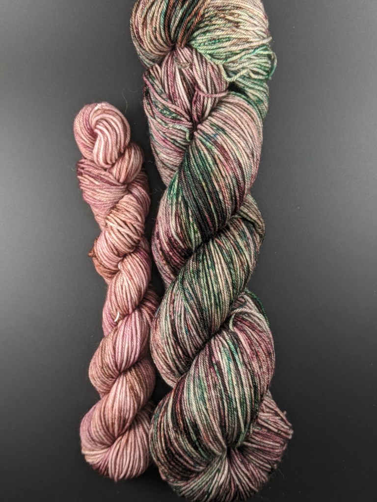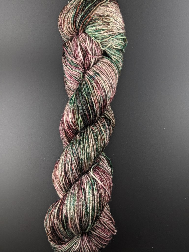 I had to come out with a new colorway for the winter, but I wasn’t feeling the festive colorways. I wanted a standard winter feeling, especially with the previous two bright colors. I’ve currently been obsessed with the pink and green combos and so I used that in this colorway. Overall, it turned into a really good winter/moody color that has bits of color in it to keep you interested. This is definitely the color I would personally use for a sweater and I do think it will work in a textured pattern as well. Of course, it will work for socks and accessories too!