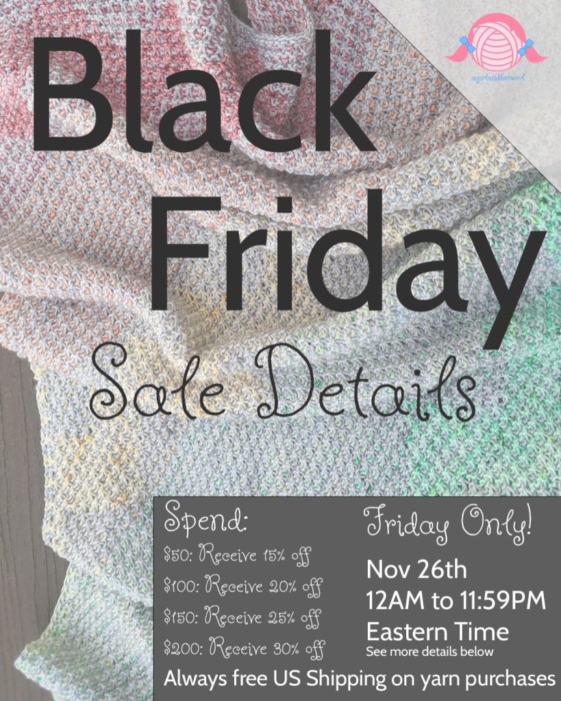 It’s that time of the year! Here are the details for the Black Friday sale at agirlandherwool!