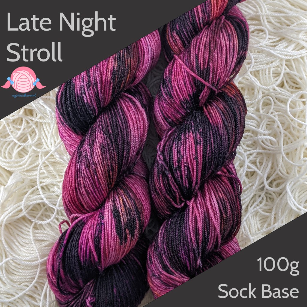 This page shows previous colorways that I have offered in my shop. For now, my shop will be primarily self-striping, but keep an eye out for some of these colors to make an appearance.